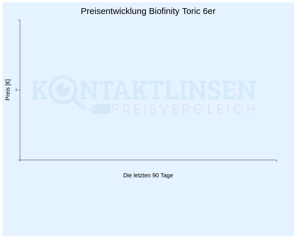 Wir speichern für jeden Tag die Preise für alle Kontaktlinsen. Im Folgenden finden Sie die preisliche Entwicklung für die letzten 90 Tage der Biofinity Toric und jeweils 2 Packungen. Den aktuellen Preis für andere Packungsanzahlen können Sie oben im Preisvergleich ermitteln.