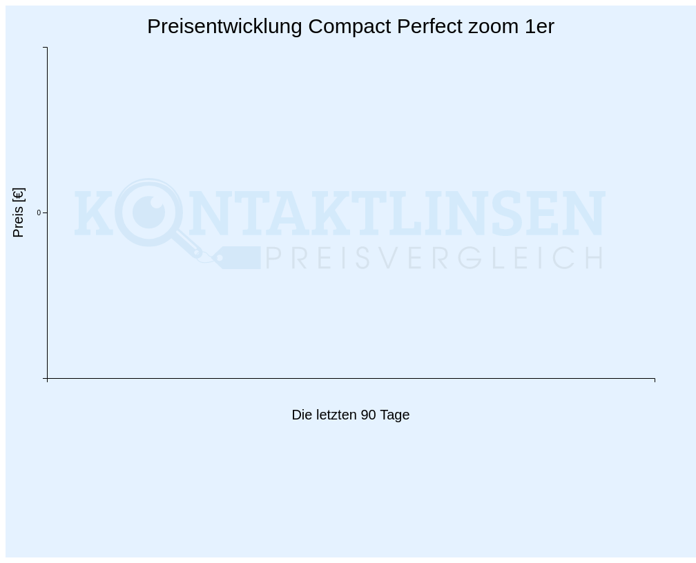 Wir speichern für jeden Tag die Preise für alle Kontaktlinsen. Im Folgenden finden Sie die preisliche Entwicklung für die letzten 90 Tage der Compact Perfect zoom und jeweils 2 Packungen. Den aktuellen Preis für andere Packungsanzahlen können Sie oben im Preisvergleich ermitteln.