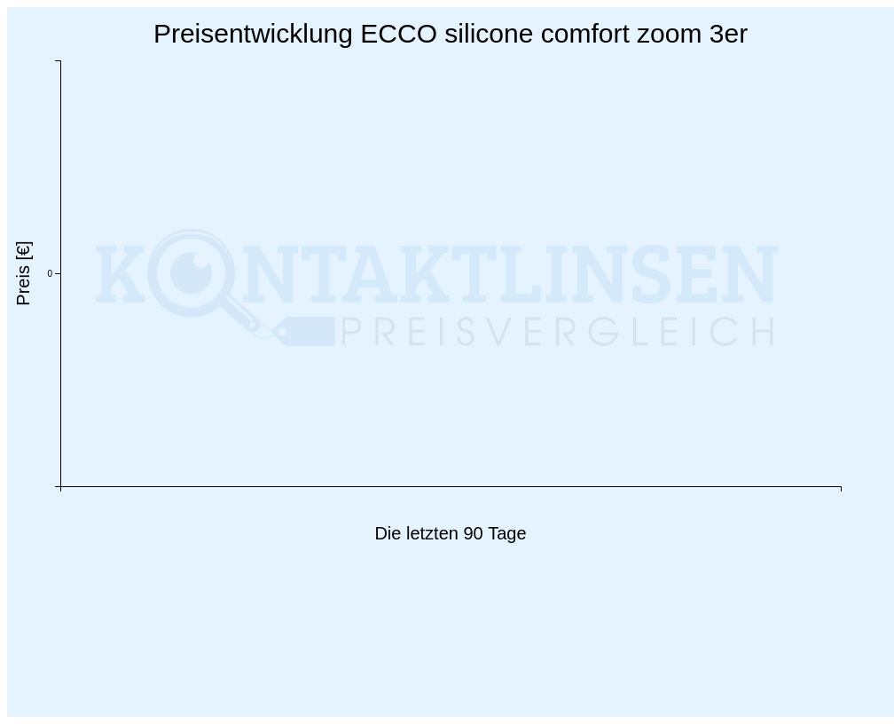 Wir speichern für jeden Tag die Preise für alle Kontaktlinsen. Im Folgenden finden Sie die preisliche Entwicklung für die letzten 90 Tage der ECCO silicone comfort zoom und jeweils 2 Packungen. Den aktuellen Preis für andere Packungsanzahlen können Sie oben im Preisvergleich ermitteln.